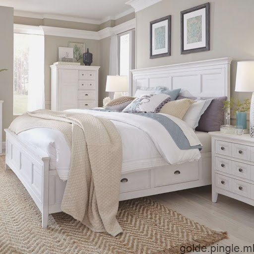 Heron Cove Relaxed Traditional Soft White Panel Bed With Storage Rails Queen White Panel Beds Master Bedroom Furniture White Paneling